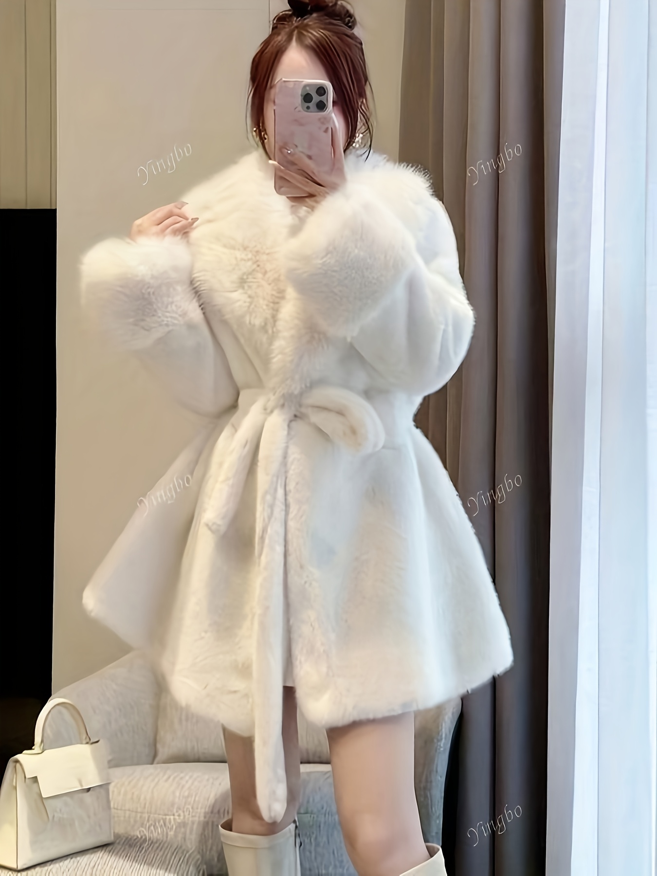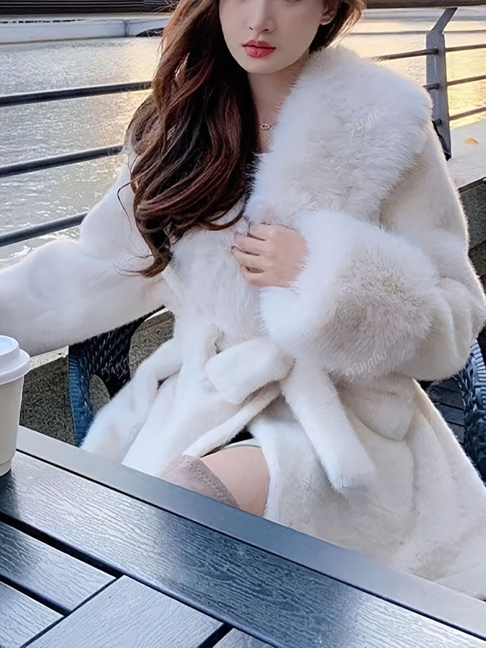 Abrigo largo de peluche con mangas completas, ideal para otoño e invierno. Su diseño elegante y su textura suave lo convierten en una prenda imprescindible para el frío.