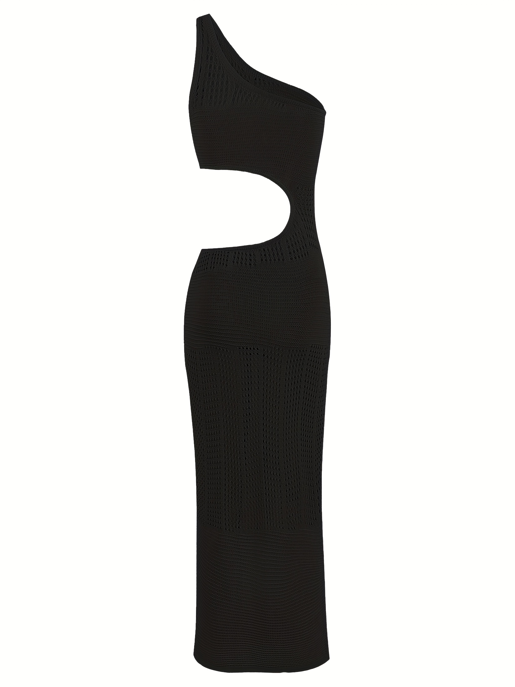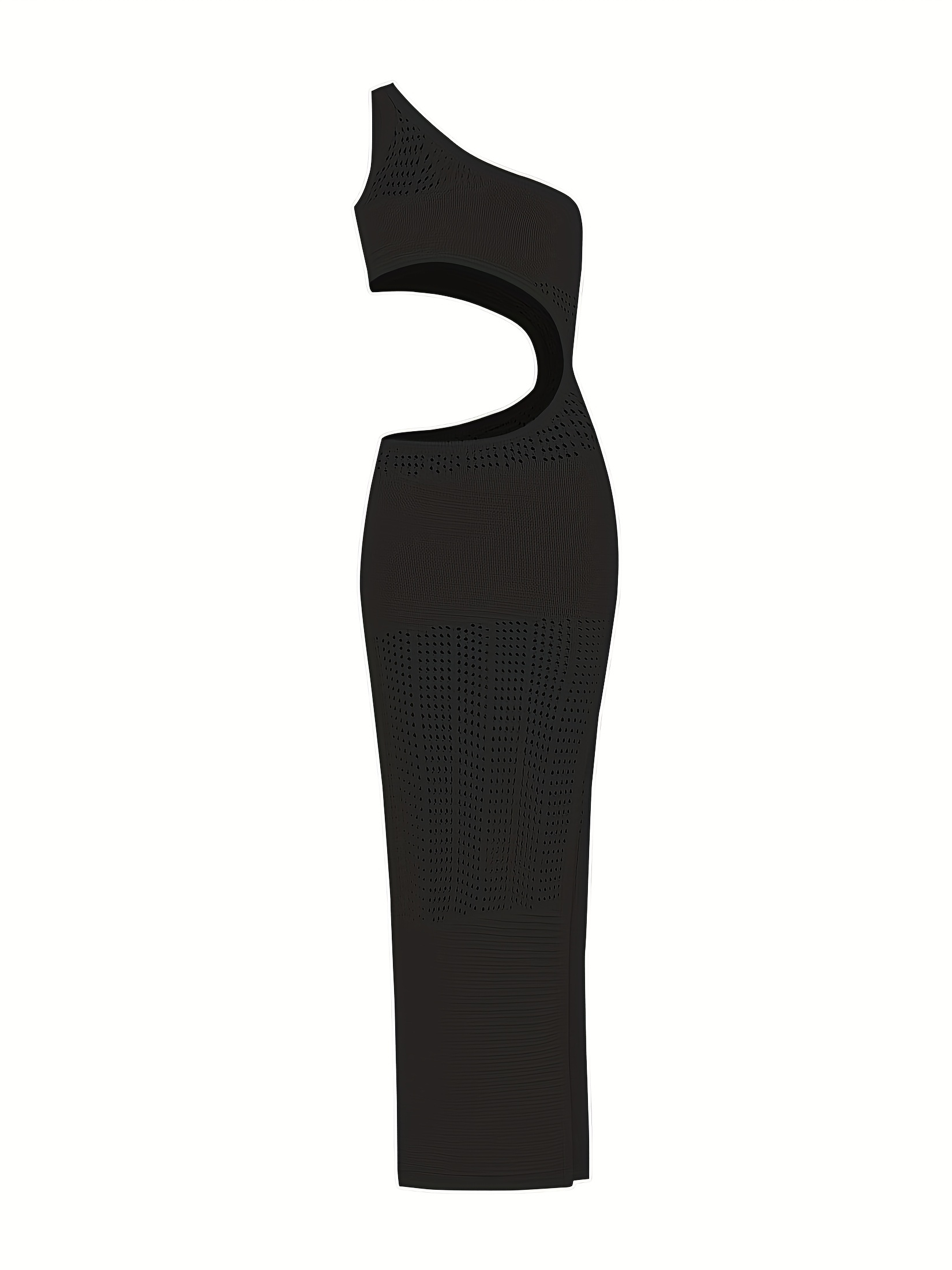 Vestido largo de playa con diseño de un solo hombro, abertura alta en la falda y detalles huecos que realzan la cintura. Su corte ajustado estiliza la figura y aporta un look sensual y elegante ideal para vacaciones, sesiones de fotos y días de playa. El tejido es ligero, cómodo y perfecto para climas cálidos, ofreciendo una caída fluida y un movimiento natural.