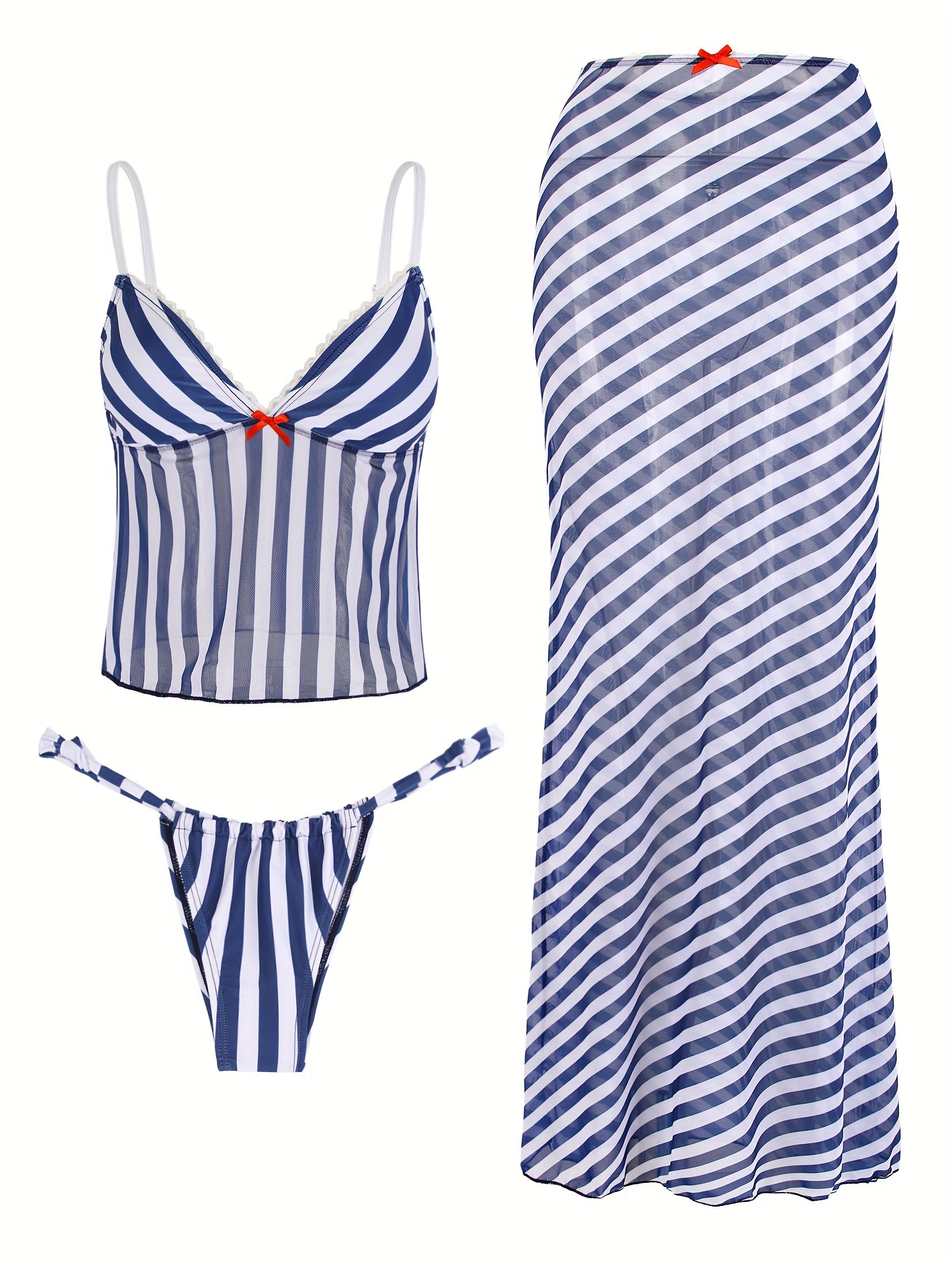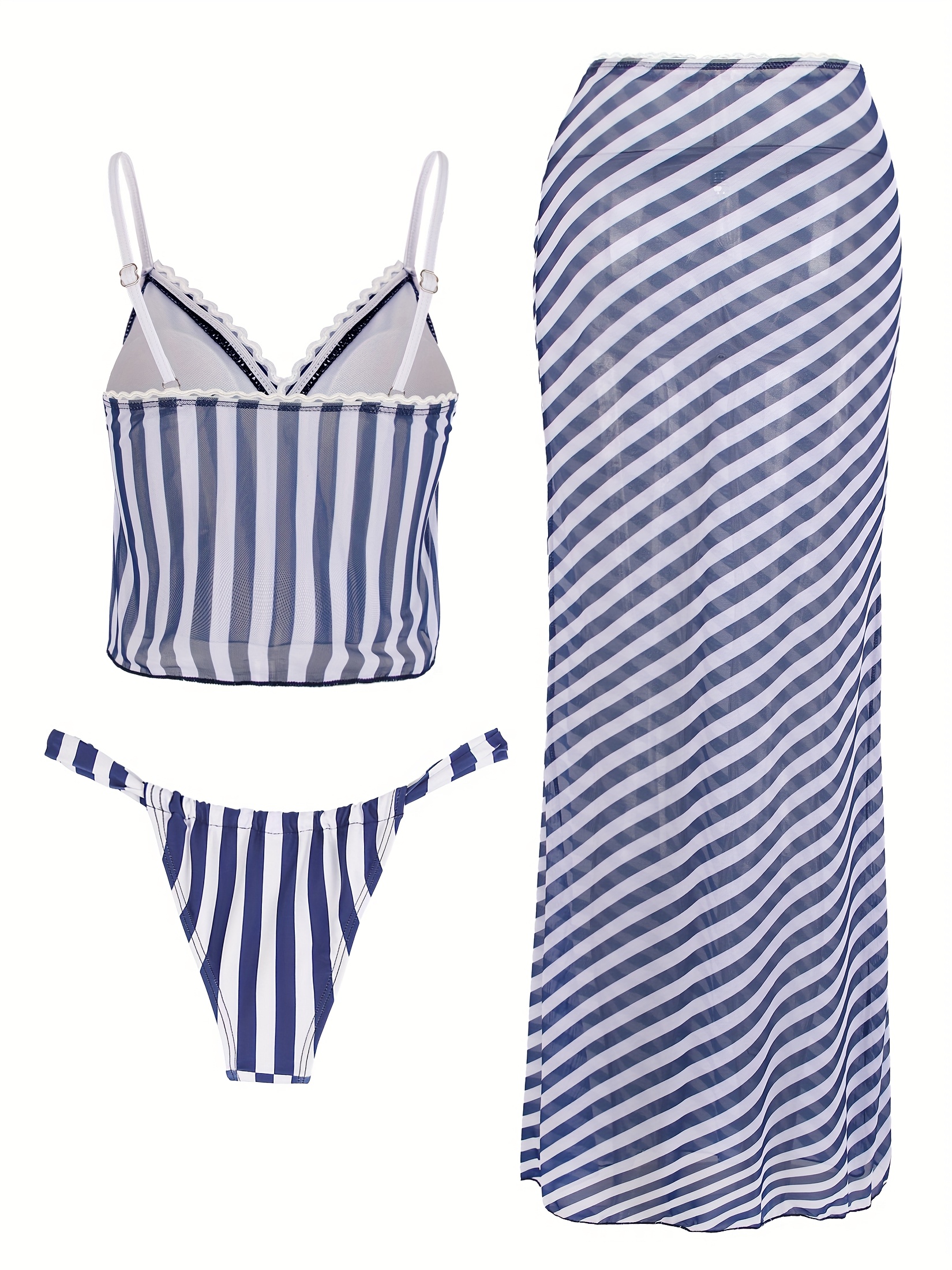 Bikini 3 piezas rayas transparentes