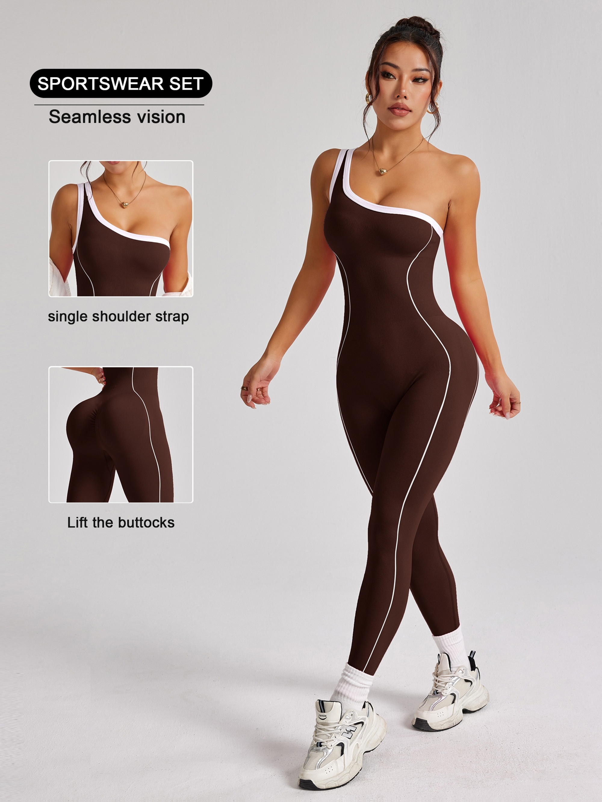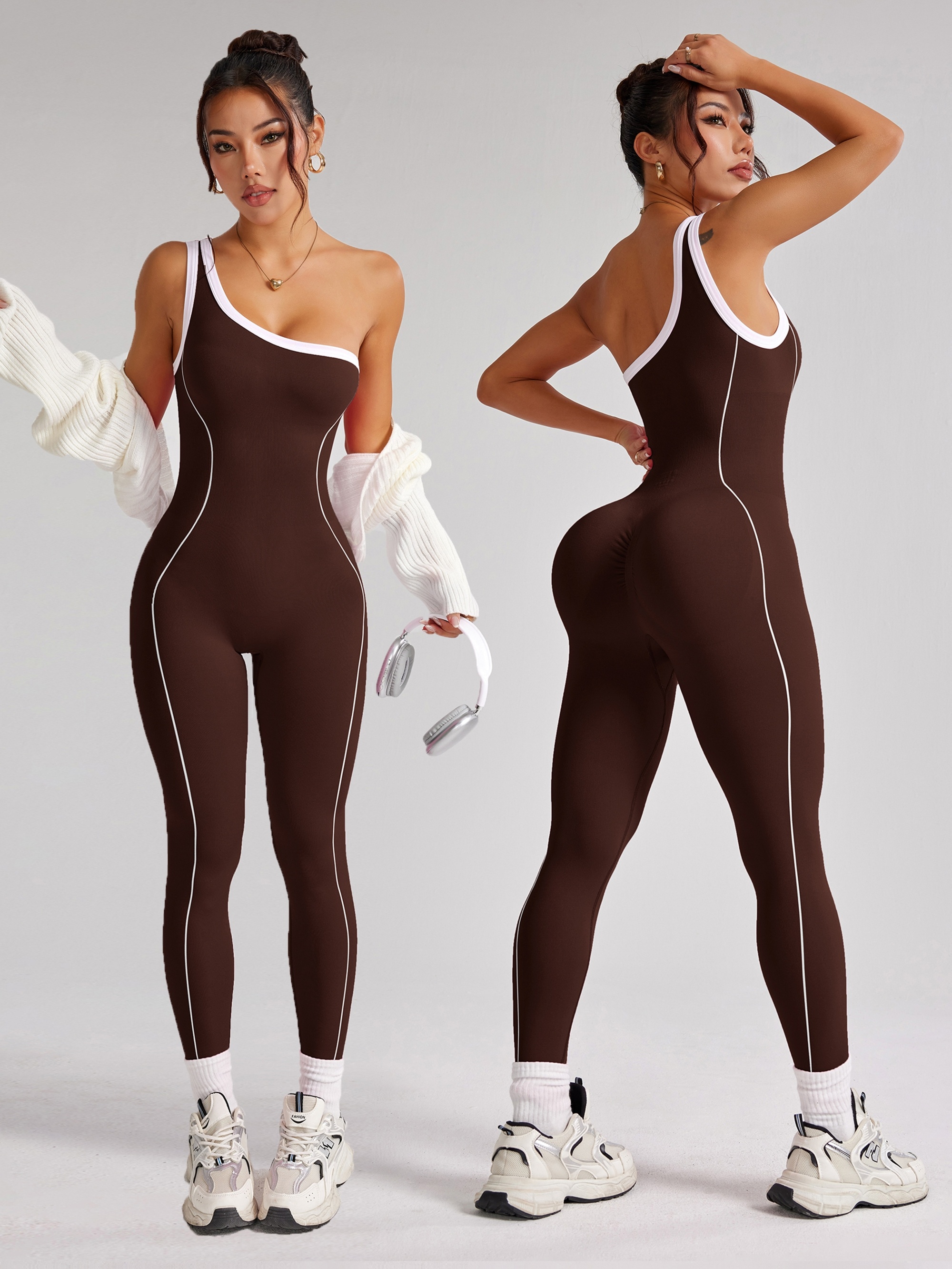 Mono deportivo de una sola manga, ajustado y elástico. Ideal para yoga, pilates, gimnasio o actividades al aire libre. Diseño moderno y cómodo.